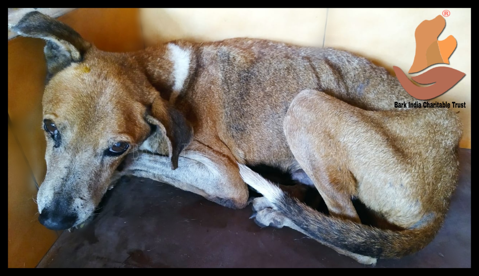 This very weak dog was located at Kuilapalayam- ECR road by Ms Willemine Pernette. Rescued and taken to our hospital by Bark India rescue team. He was diagnosed with severe anemia and unable to have food himself. Being admitted at our rescue centre, we help him to recover with medication and intravenous fluids. Though the dog still remains weak, we hope to see him back to good health very soon. Thank you Ms Willemine for helping the rescue team.