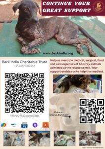 Among millions of stray animals in India, most are deprived of proper food, shelter and care but the situation worsen when they are sick/injured/wounded and in need of medical care. Being an animal welfare Organization, Bark India Charitable Trust is always here to help the neediest strays in the best possible way.