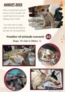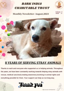 When completing 8 years of helping stray animals, Bark India counts on public support to help more and more animals. Have a look at the animal welfare, rescue , treatment and other activities done in the month.