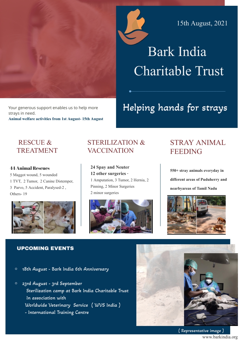 August 15, 2021August 15, 2021Blog, News, Photos, Shelter, UpdatesBarkIndia TeamAnimal Rescues, Treatments and Feeding Charity for street animals- Rescue, medical treatment, Spay and Neuter, Stray animal feeding