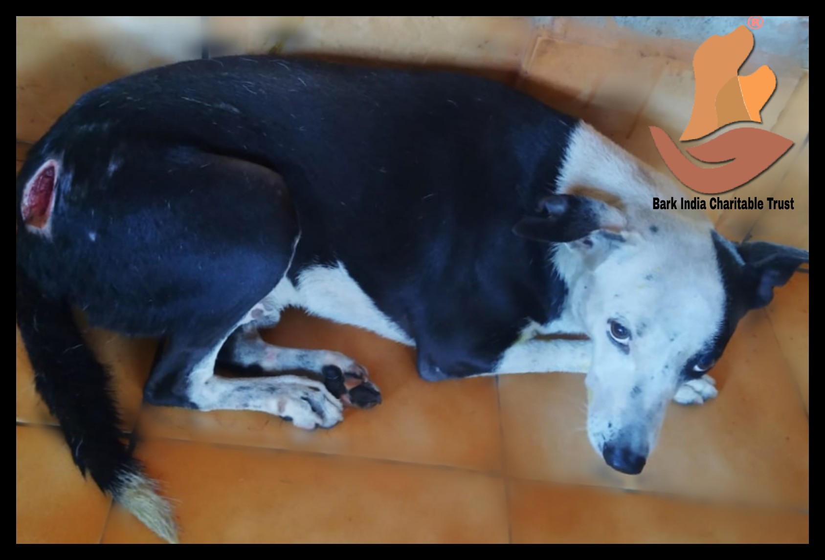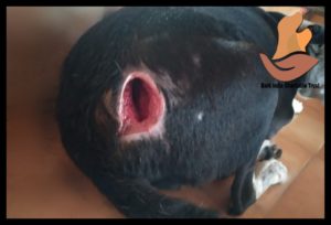 The big and wide deep wound is visibly the result of human cruelty. Dog is getting treated and better at Bark India. Thank you Ms Anusha for informing about him.