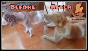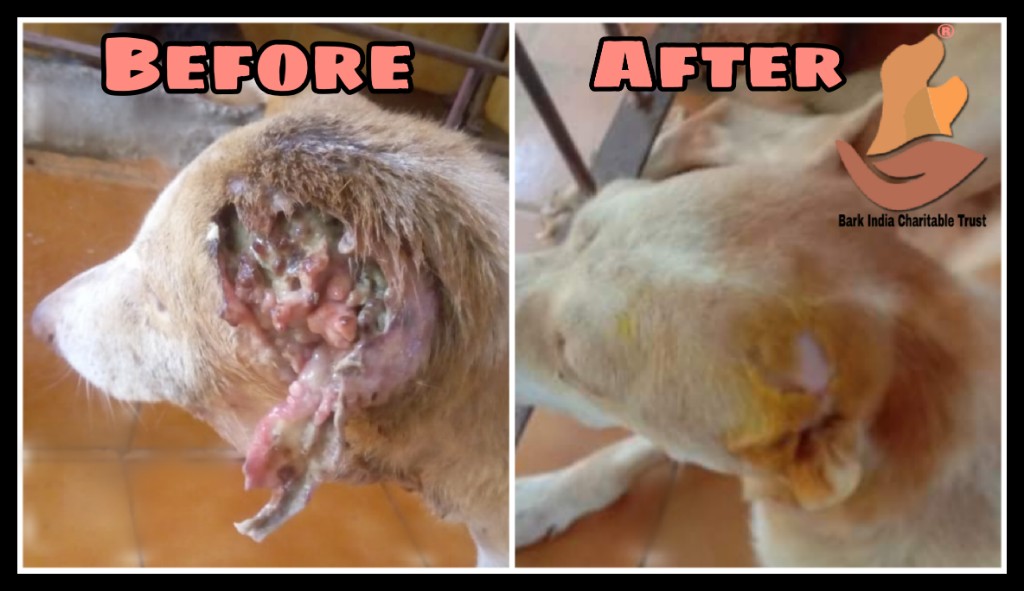 Bark India is happy to share the update of the dog who was rescued with maggot eaten ear. The dog was under treatment for one month at Bark India rescue centre. With medication , the wound is healed , vaccinated and he is back to his place. Thank you Ms Harsha Sharma for helping with his rescue.