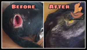 At the time of rescue, the wound on his thigh was fresh and made by unknown humans with a sharp weapon. He is dewormed and vaccinated after treatment.