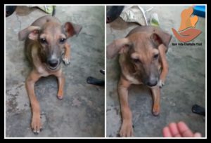 This little puppy had an accident while he was living on street with his mother and siblings. Her mother and one sibling were died in accident. Her front leg was decayed completely with a lot of maggots inside when she is found by the family of Ms Rajalakshmi.