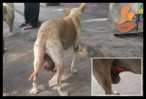 Female stray dog with mammary gland tumor got rescued from Lawspet, Pondicherry. She had difficulty in walking with the big hanging tumor.