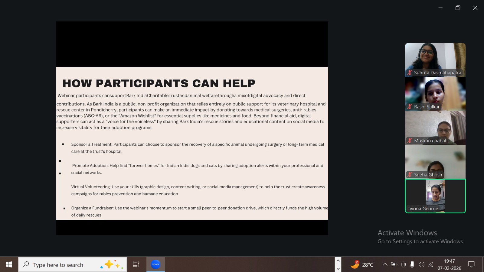 At Bark India, we firmly believe that education is the foundation for change. Creating awareness about coexisting peacefully with animals and respecting the environment is central to our mission. Collaborations like this webinar allow us to reach wider audiences and inspire meaningful action.