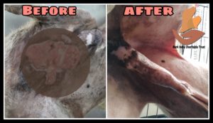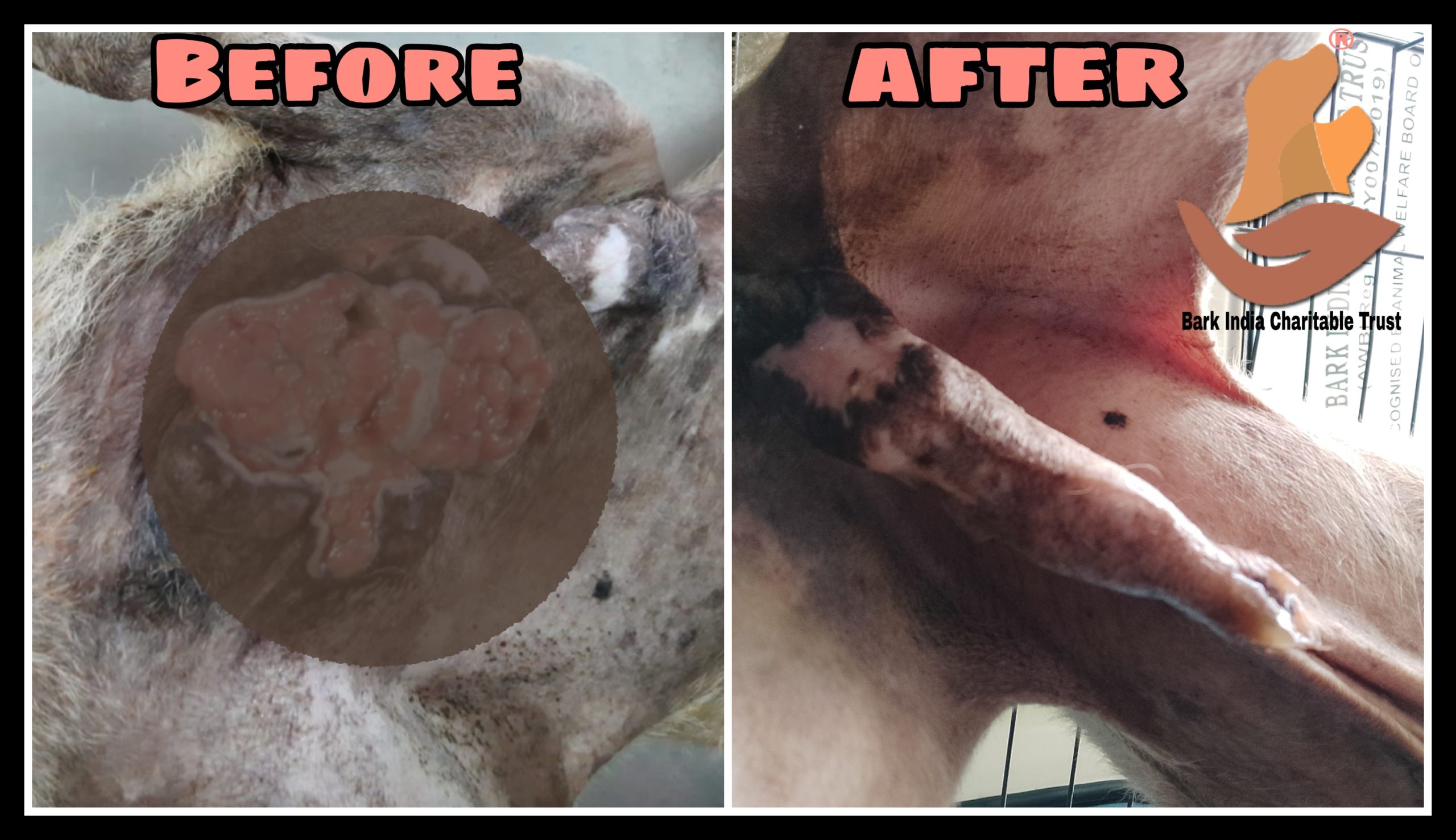 Stray dog affected with Canine Transmissible Venereal Tumor – Recovery with veterinary treatment at Bark India veterinary clinic.