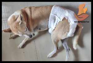 This street dog rescued from Pondicherry beach with fracture on front leg and mammary gland tumor, had a surgery at our veterinary hospital. The tumor is removed by the successful surgery done by veterinary surgeon Dr. Gurunath and Dr. E Vijay.