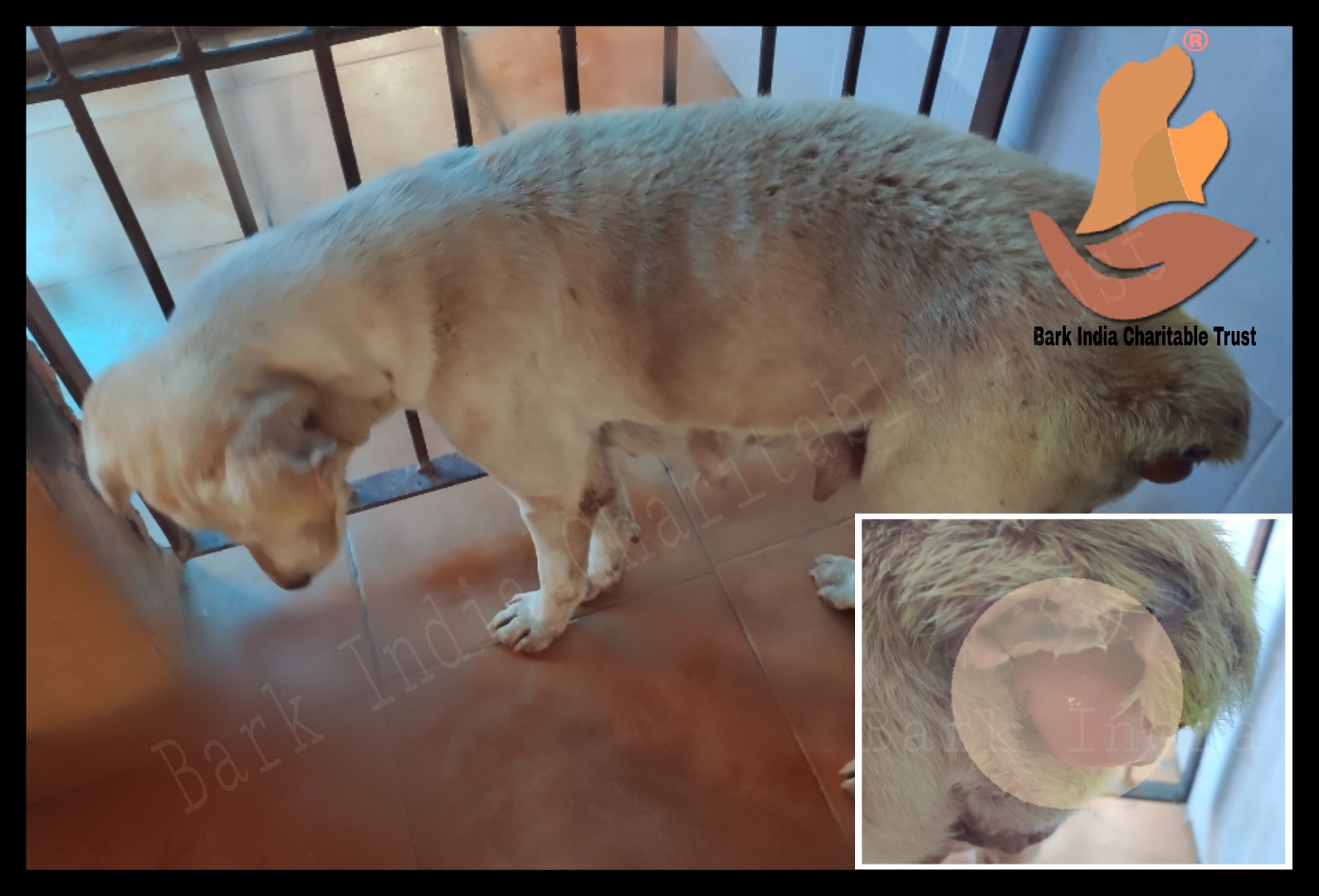 She was wandering through Pattanur, Tamil Nadu, with vaginal prolapse. In pain and discomfort , She use to disappear that made her rescue hard. After several days of effort, Mr. Mari located her, and got rescued by Bark India animal rescue team.
