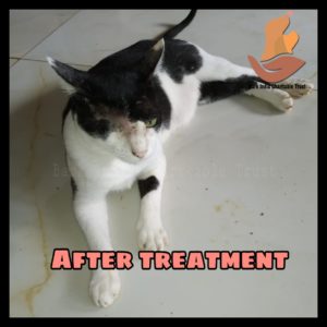 We are very much happy to share the update of the rescued cat- Lucky. Lucky was rescued from Navarkulam, Pondicherry when Bark India rescue team was coming back after a dog rescue. He was sitting on the side of the street with 2/3 of his face was broken and full of live maggots inside.