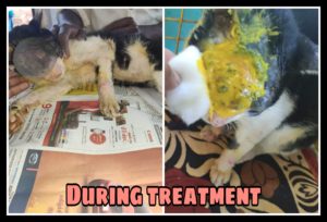 His condition was really desperate that made the entire team doubtful about a recovery. The horrible wound was very much visible after removing the maggots and cleaning the wound. Lucky literally had no face and his right eye was popped out and eaten by maggots.