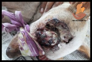 Found with her three babies who were shifted to foster home and later found forever homes. Even in pain and suffering, she was wandering to feed her children. Rescued and transported to Bark India by Mr Rohit Shankar, she is admitted at Bark India hospital.