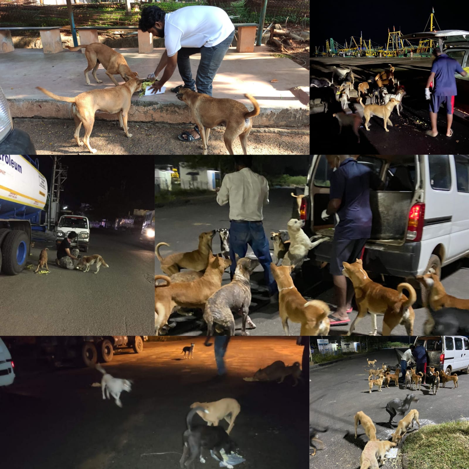 Understanding the necessity of feeding starving stray animals, especially stray dogs, we started feeding them. It was during the first Covid19 in 2019, we came to realise how pathetic the condition of stray animals who are depended on restaurant leftovers, street shops or some pieces of biscuits people give for them. Human presence along with functioning of canteens, hotels and other shops ensured some food, but they were pushed to starvation, without a single morsel of food, with the shutdown of each and every shop. Also a few animal lovers / feeders that used to feed them had difficulty in going out for feeding. Seeing those literally starving without a single decent meal or water, our feeding programme was started with feeding of 50-60 strays around our areas.